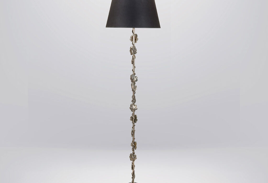 A spiralling leaf design with exceptionally naturalistic details has been hand-casted on a longline brass stem on a cast-detailed base.