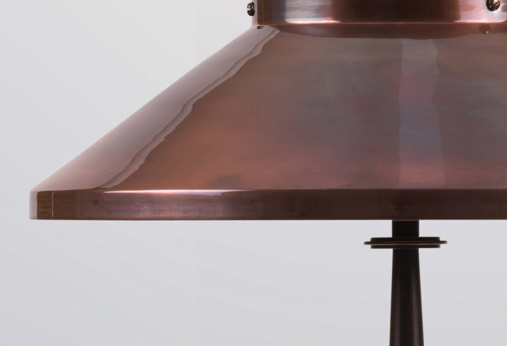 The Felix Table Lamp is a well-designed, refined solid brass lamp that is a real heavyweight. It is made with a heavy solid copper tapered centre, shown with rubbed bronze base and lamp fittings, with a solid copper spun shade.